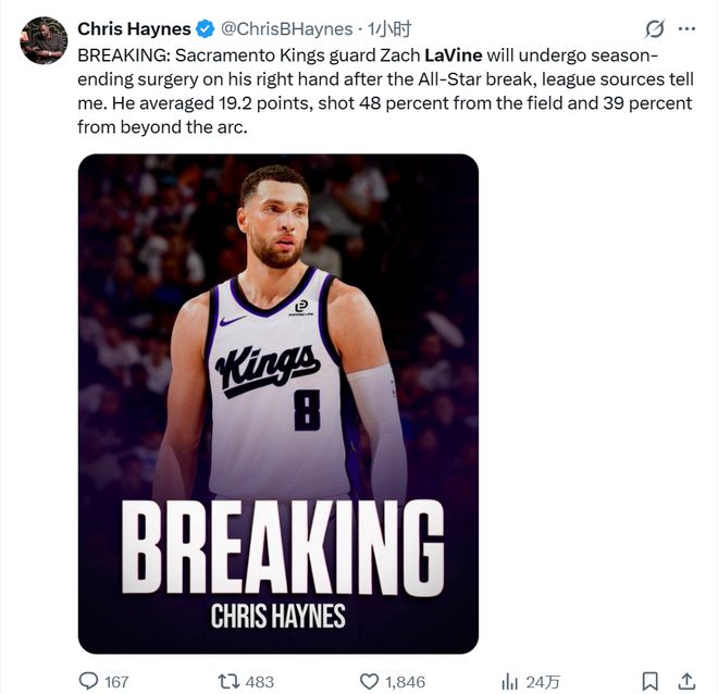扎克-拉文将在全明星后接受手术,本赛季宣布报销。