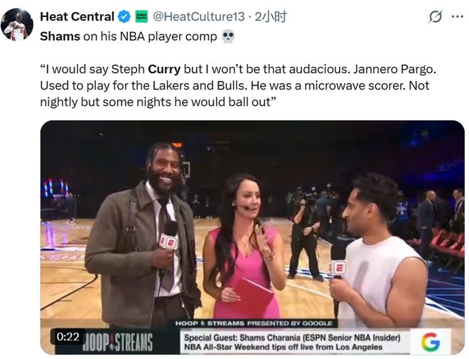 但Shams也不甘示弱,接受采访被问到自己模版是谁。他则是毫不掩饰“我觉得我是库里。”