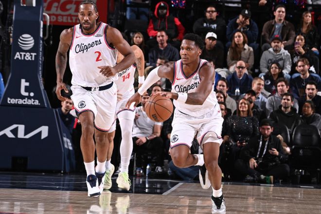 再看加兰,他在场时,泰伦卢可以像使用欧文一样使用他,快船的节奏更快,每48分钟回合数来到103,快船百回合能狂轰131.6分;出战的5场比赛,快船5战0负,场均数据17.8分5.8助攻2.4篮板,3分命中率46%,场均命中3.4个3分,投篮命中率47%。对于加兰与伦纳德这对组合,泰伦卢给出这样的评价,首先对手不敢再肆无忌惮的包夹伦纳德,其次给伦纳德配一个速度更快的后卫,伦纳德的速度也会更快!而快起来的伦纳德更有威胁。