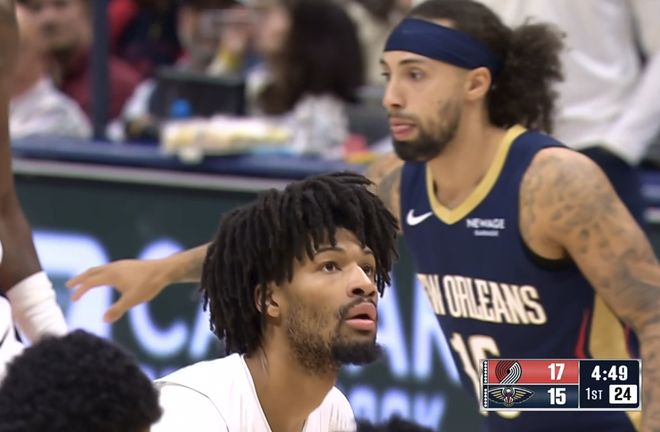第二节开始后两队的进攻都不错,杨瀚森竞争对手里斯投中三分,这边马特科维奇底角三分打进,鹈鹕36-35反超,夏普反击折叠暴扣。比赛起冲突了,夏普跟琼斯双双吃到技犯,格兰特、米西被驱逐。比赛继续进行,奎因抛投打进,比分来到50-50,奎因点飞罗威再中。夏普三分球投了个三不沾,之后夏普战斧扣篮为自己找回面子。半场结束,开拓者落后2分。
