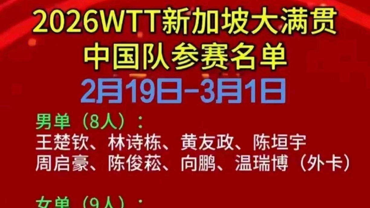 大年初三开打的新加坡大满贯,国乒17人豪华阵容出征,表面兵强马壮,细看名单却暗藏玄机。卫冕冠军王楚钦、孙颖莎双双被“卸掉”双打任务,只专注单打;世界第一混双“栋曼组合”林诗栋/蒯曼同样被拆散。教练组这手变阵,意图再明显不过——让主力减负保金牌,把新生代扔进火坑里练胆。