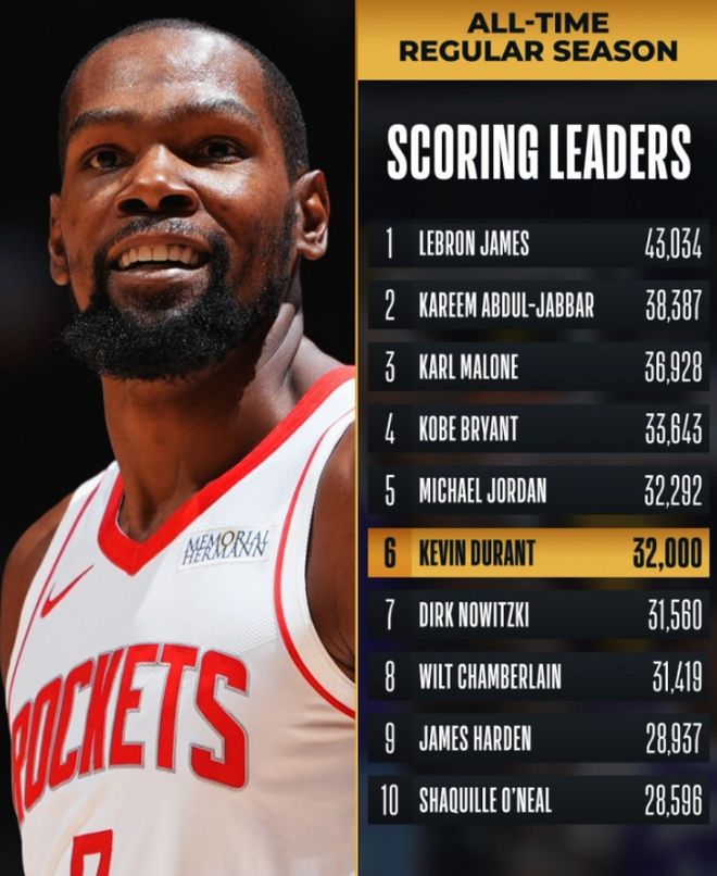 火箭这边,杜兰特13投6中,轰下14分2篮板2助攻。
