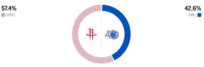 赛前,美媒ESPN对本场比赛进行了胜率预测,火箭队胜率为57.4% ,魔术胜率则仅有42.6% ,劣势明显。