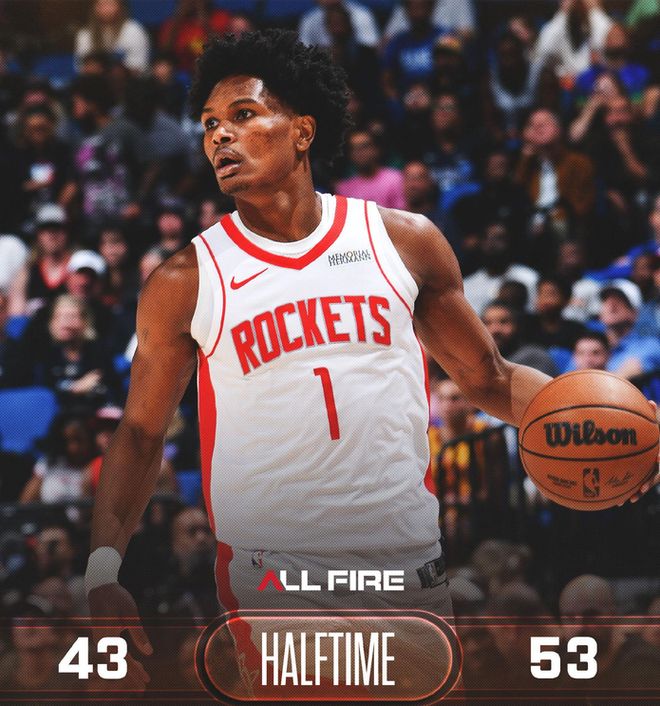 值得一提的是,火箭半场三分球11投1中,命中率低至9.1%,并且还出现了多达10次失误。