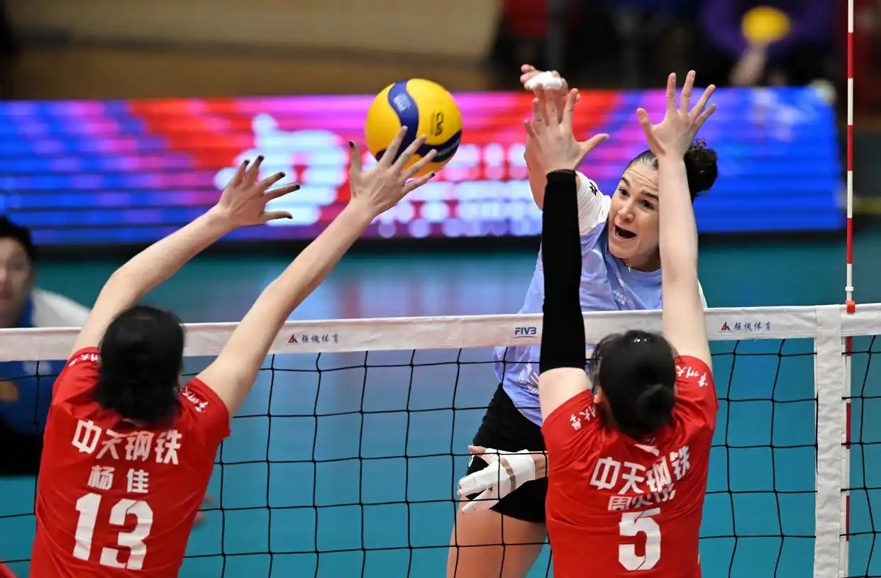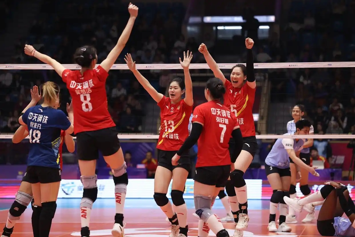 二、四局凭借进攻优势扳平比分。决胜局天津一度以12-10领先,但局末连续失误被江苏连救赛点,最终江苏以17-15翻盘。