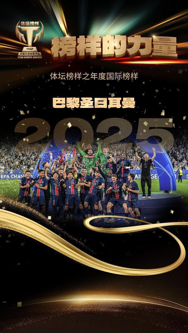巴黎圣日耳曼足球俱乐部获得年度国际榜样奖。球队在2025年收获六项冠军,其卓越成绩也印证了足球运动在全球体坛的广泛影响力。