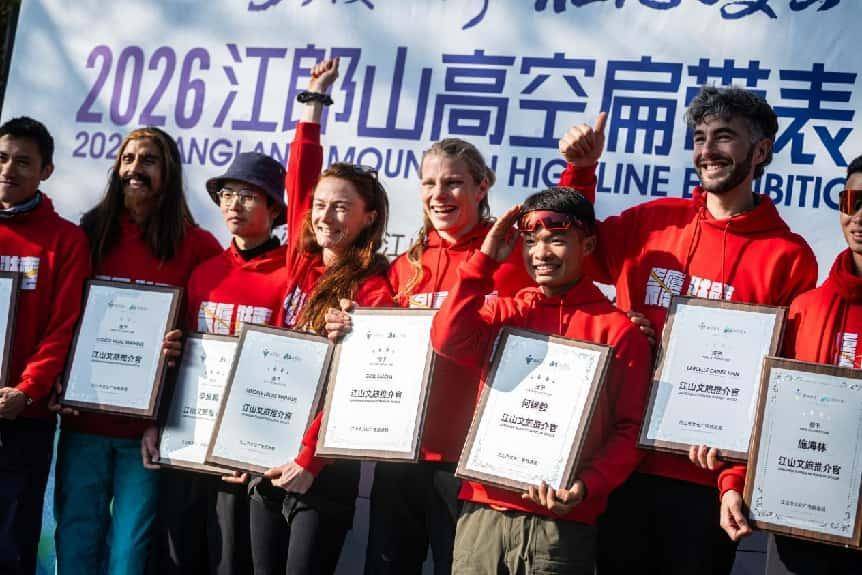 1月3日,2026江郎山高空扁带表演活动圆满落下帷幕。本次活动以“步履不停·壮志凌云”为主题,来自全球6个国家及地区的10位顶尖扁带高手在这里展开了一场集极限竞技、人文艺术与自然奇观于一体的云端盛会。本次活动由江山市人民政府主办,江山市文化广电旅游局、江山市文旅投资集团有限公司承办。
