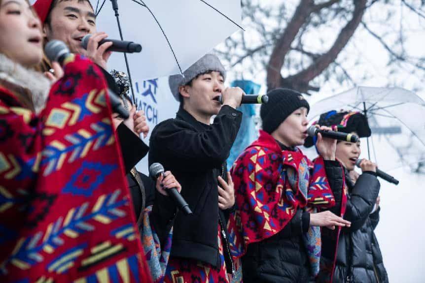 首次打造“扁带×阿卡贝拉”实时音画共振。 选手们在扁带之上行走、腾跃,其动态节奏与地面阿卡贝拉人声乐团的现场演唱实时呼应、同频共创,实现了视觉奇观与听觉艺术的深度共鸣,创造了“人在空中走,乐在风中流”的崭新艺术形态。