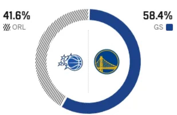 赛前,美媒ESPN对本场比赛进行了胜率预测,魔术队胜率为41.6%,勇士队胜率则为58.4%,稍占优势。
