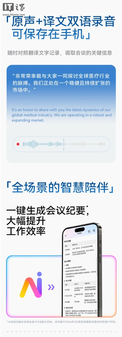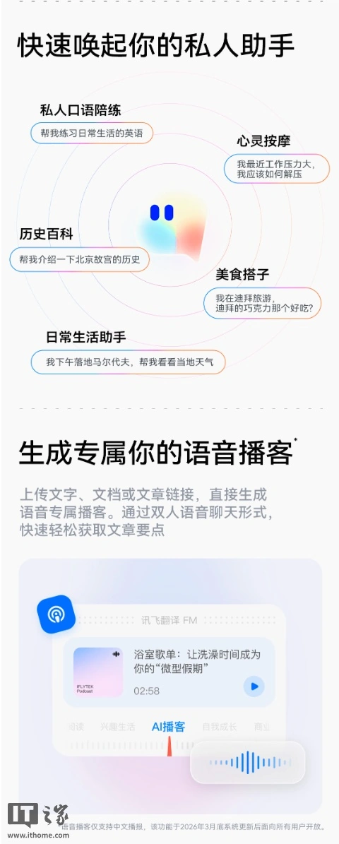 此外,这款耳机还拥有全场景 AI 助手,可一键生成会议纪要,提升工作效率,支持生成专属语音播客,可通过双人语音聊天的形式快速获取文章要点。