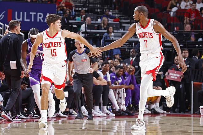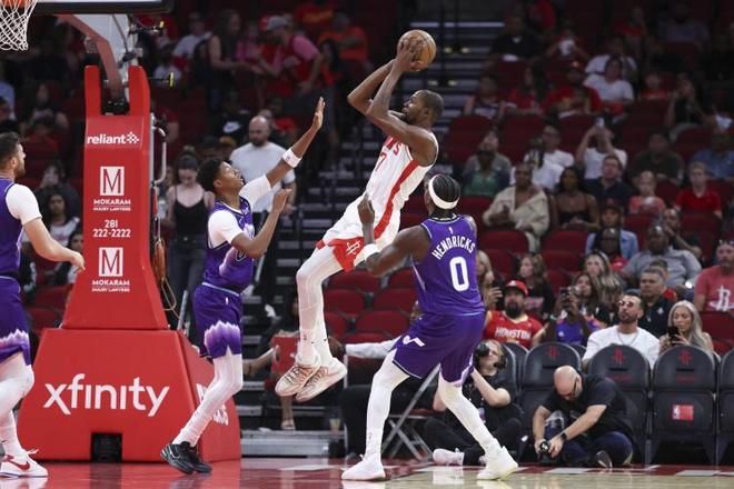 缺席火箭队季前赛首场比赛后,杜兰特在次战对阵爵士队的比赛中迎来身披火箭球衣的首场比赛,并且率队以140-127拿下季前赛两连胜。