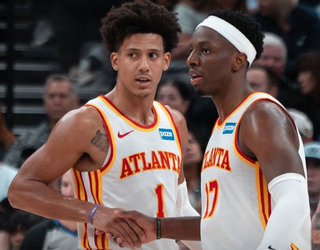 在这个过程中,老鹰队众志成城,杰伦约翰逊扮演着新鹰王的角色,场均保持着22分+11篮板+7.4助攻+2抢断的输出,命中率高达58%,三分球命中率为43%,真实命中率高达66%。尤其是老鹰队VS爵士队一战,杰伦约翰逊打出生涯代表作。约翰逊出战40分钟,19投10中(三分球5中4),罚球11中7,爆砍31分+18篮板+14助攻+7抢断的豪华数据。据NBA官网数据统计,约翰逊一战刷新个人得分、篮板、助攻和抢断生涯新高。同时,约翰逊是2009年的保罗之后第一位单场砍下30+三双且送出7抢断的球员,复制了控卫之神的神迹,强如哈登、库里、东契奇、SGA也未能做到过。