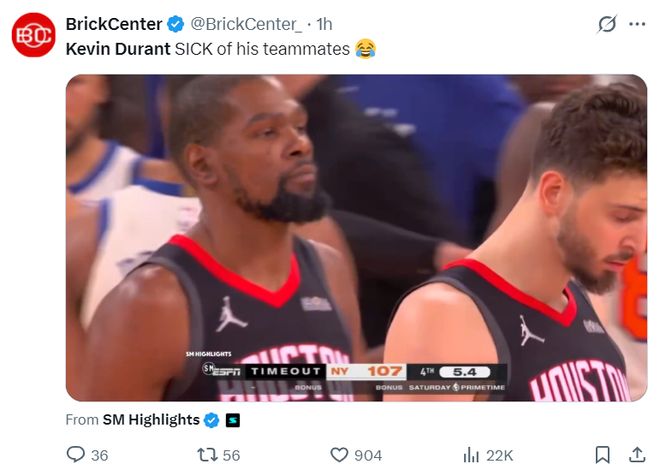 尼克斯媒体:KD在关键时刻掉链子,他在末节发挥失常,这是他在15年来首次在麦迪逊广场花园球馆输球。