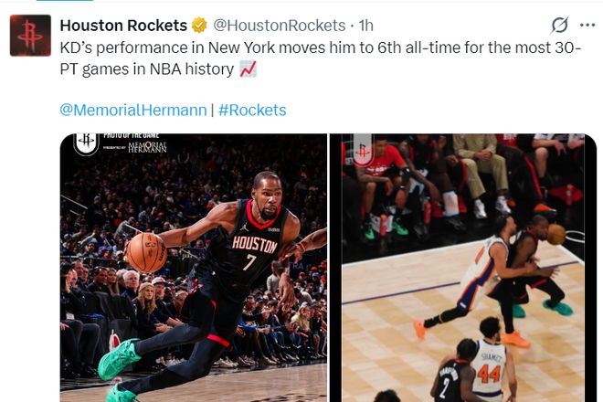 休斯顿火箭队在一度领先纽约尼克斯18分的情况下被逆转了,本赛季火箭已经数次在下半场领先超过10分被逆转,上赛季以逆转他人闻名的火箭队,在今年加入了KD后变得截然不同,杜兰特这场比赛更是多次在决胜时刻犯错。