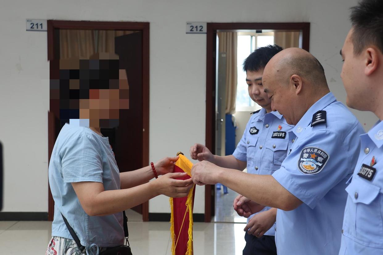 李女士赠送锦旗感谢民警