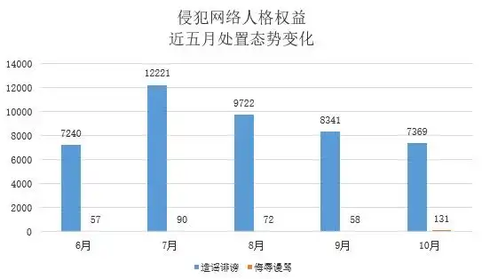 有效举报中处置侵犯网络人格权益7500条,侵犯个人信息权益1023条。其中侵犯网络人格权益中,采取修正、删除、屏蔽等措施处置造谣诽谤7369条,侮辱谩骂131条。关闭账号暂无,其中已对917个账号进行线下通知警告。