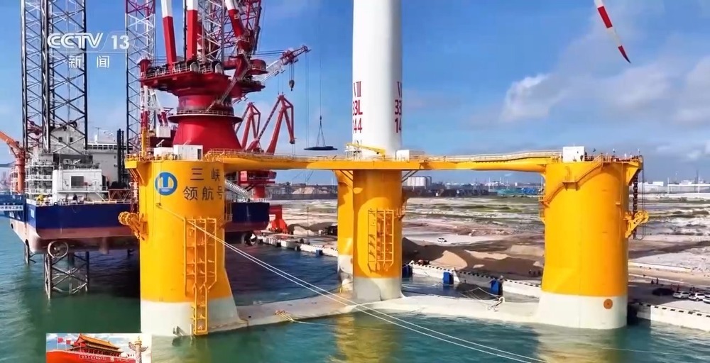 “三峡领航号”项目现场负责人 向君:风机安装期间,我们实时监测风浪流的情况,精准调节压载系统,使“领航号”经受住了台风“桦加沙”的考验。同时我们通过优化风机安装工艺,保证了风机的最终顺利安装。