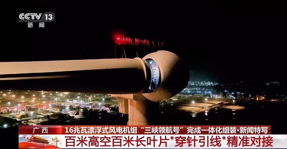9月30日凌晨5时,“三峡领航号”首支超长叶片从安装船甲板缓缓升起,历经28小时,风机的三支叶片在百米高空全部完成精准对接,标志着全球首台16兆瓦漂浮式海上风机安装完成。