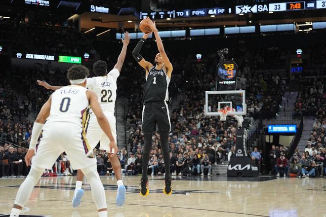 北京时间1月26日,NBA常规赛迎来马刺与鹈鹕的比赛。主场作战的马刺赛前以31胜14负稳居西部第二。在接连不敌森林狼、雷霆后,球队迅速调整、重整旗鼓,近5战豪取4胜,重新找回赢球的节奏。上一场客场对阵西部弱旅爵士,马刺以126-109轻松取胜。那场比赛,福克斯扛起进攻大旗,轰下全队最高的31分,文班亚马则在内线予取予求,交出26分14篮板的亮眼两双。除了这对内外核心,尚帕尼、卡斯尔与凯尔登也纷纷发力,多点开花,帮助马刺轻松取胜。