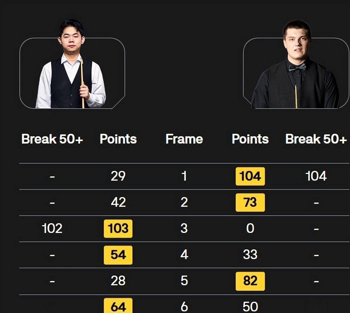 吴宜泽的晋级之路显得最为“轻松写意”。 面对比利时选手本·默滕斯,吴宜泽在首局62比50险胜后,彻底接管了比赛。 他连续轰出单杆79分、120分和128分,行云流水般连下四城,以一场干净利落的4比0横扫对手,昂首挺进32强。 这场胜利也让他成为当日首位晋级的中国选手。