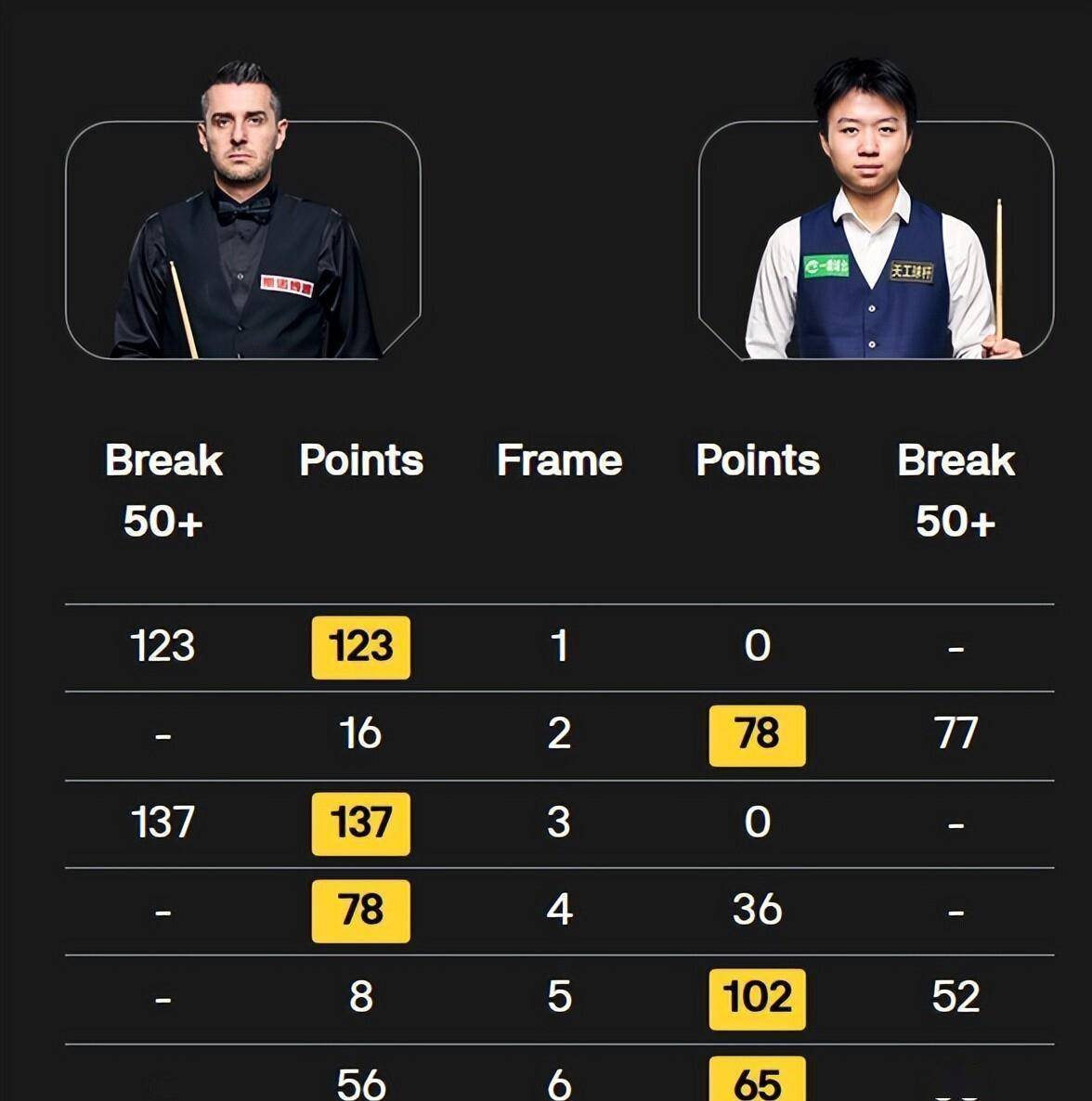第三局,威廉姆斯乘胜追击,打出单杆59分,以60比17再胜,瞬间以3比0拿到赛点。 直到第四局,斯佳辉才如梦初醒,回敬了一杆54分,以80比24扳回一城。 第五局,他以62比44再胜一局,将比分追至2比3。