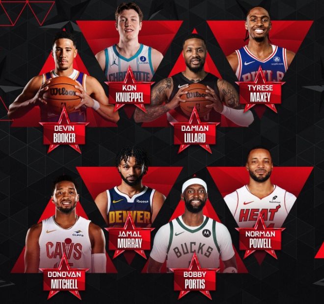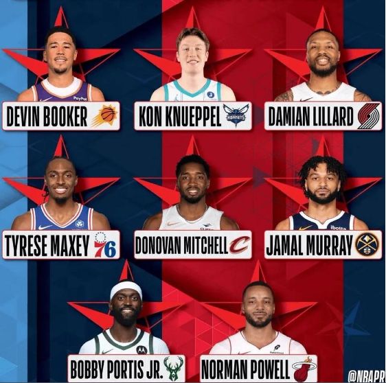 预赛当中得分排名前三的球员,分别是布克30分,利拉德与克努佩尔均是27分,3人携手晋级决赛。