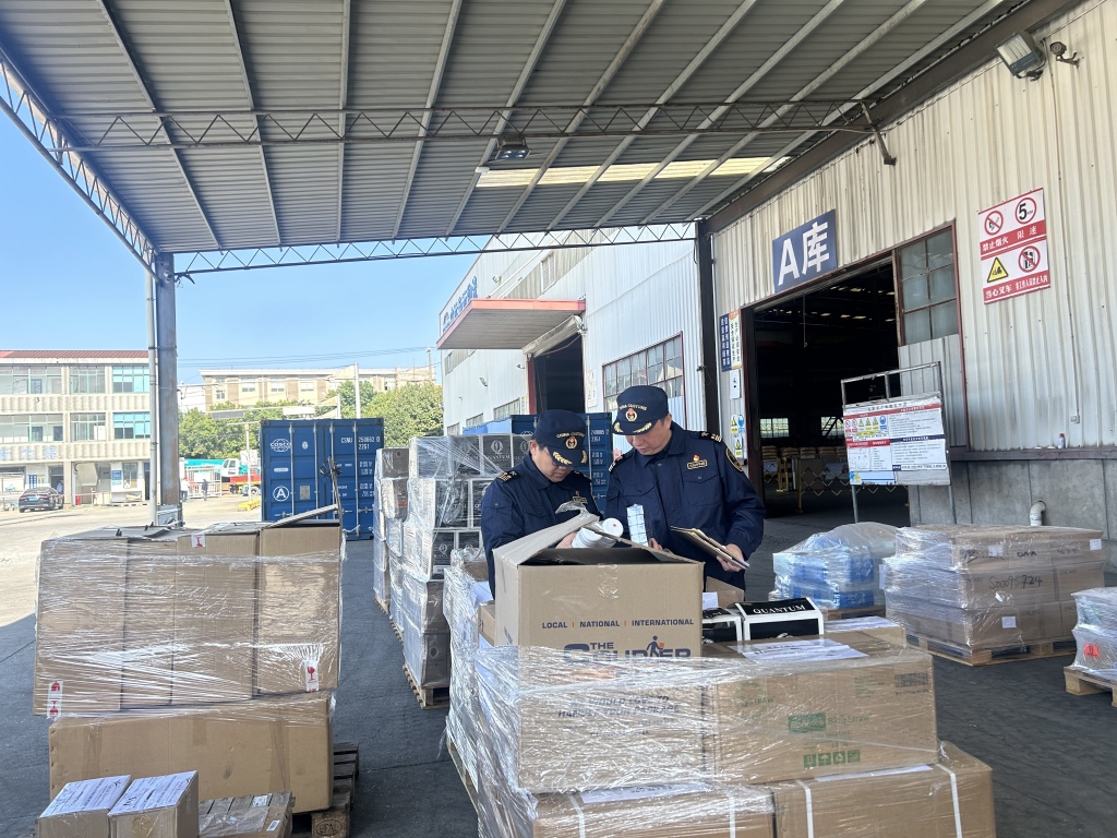 2025年10月28日,上海吴淞海关关员对海运分拨进境的进博会展品进行现场监管。解双双 摄