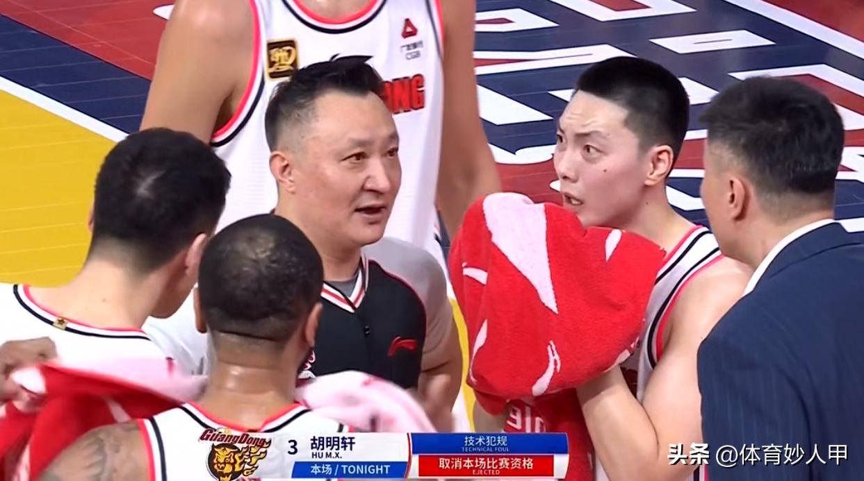 但是,接下来裁判的操作却让人看不懂,只见当值裁判员,吹了杜润旺一个违体犯规,迪亚洛一个技术犯规,胡明轩一个技术犯规,因为,胡明轩在此之前,就吃到了一次违体犯规,就这样,胡明轩因为一个技术犯规+一个违体犯规,被直接驱逐出场。