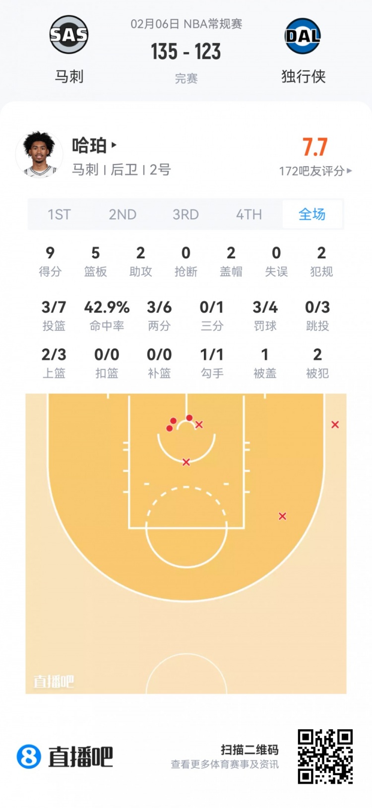 马刺榜眼秀哈珀 登场19.2分钟