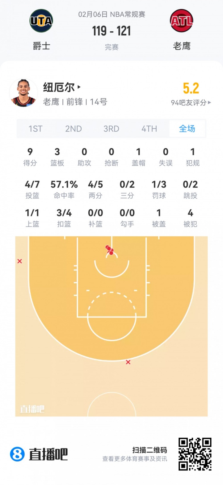 老鹰首轮23号秀纽厄尔 登场16.5分钟