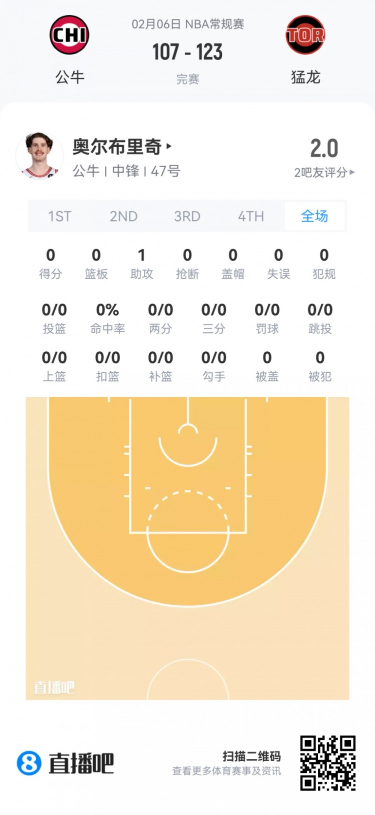 公牛次轮55号秀奥尔布里奇 登场4.1分钟