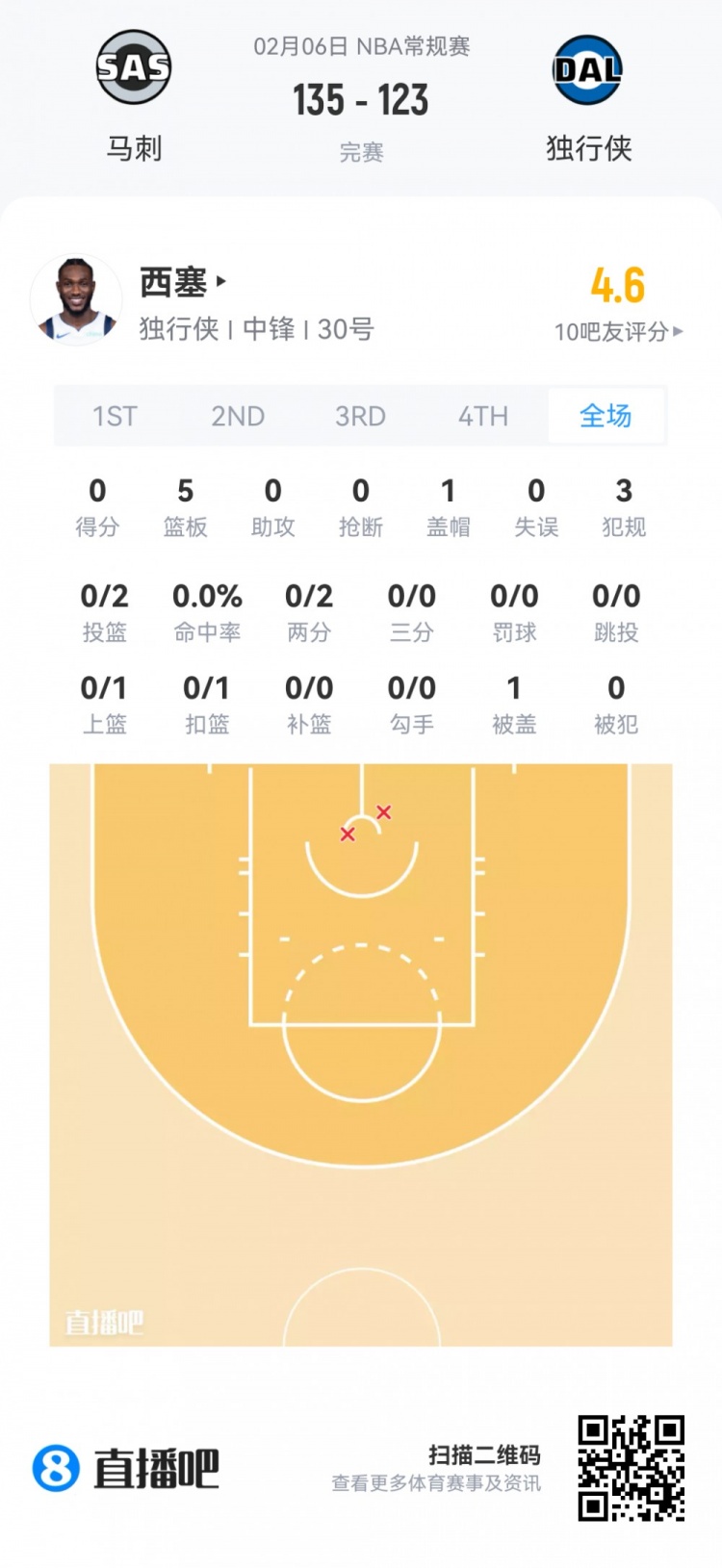 独行侠落选秀穆萨·西塞 登场11.7分钟