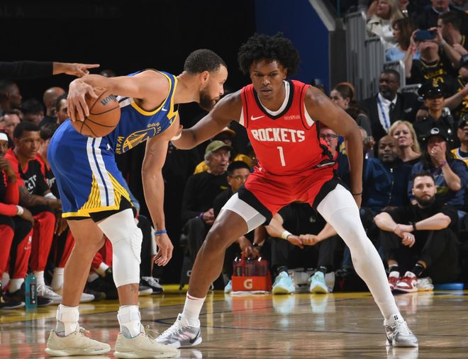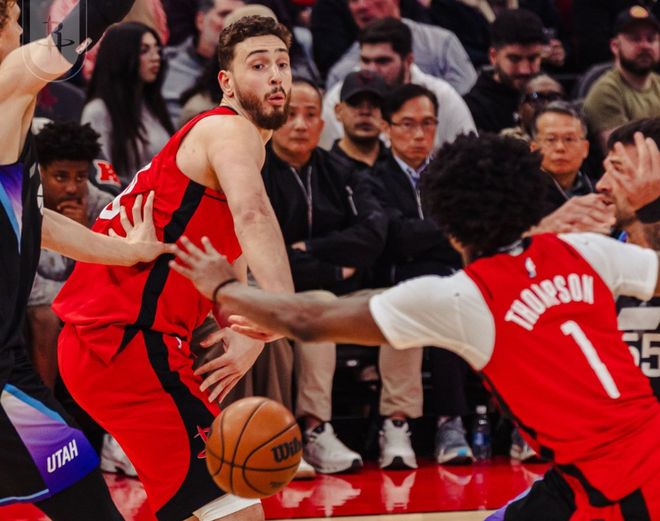 这就导致球队不仅没有主控手,内线的统治力也失去了,指望申京根本不行。所以,杜兰特成为球队保底的存在,场均25.8分5.4篮板4.6助攻,两项命中率高达50%+40%。比较意外的是,本赛季铁人阿门在最近一场31分大胜国王的比赛中,受伤缺阵,结果谢泼德顶替他进首发后,三分球16中7狂砍28分,火箭整个进攻都被盘活。之前我们就提到过一个问题,火箭两大核心基石:申京和阿门都没有投射,任何一支志在夺冠的球队,不可能允许两位核心都是空间漏洞。而阿门到今夏也该续约,他该拿多少钱?