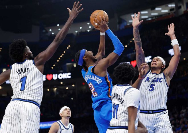 从两组数据说起,本赛季亚历山大场均31.8分4.4篮板6.4助攻1.4抢断,两项命中率55%+38%,保持这个效率,亚历山大将连续第四年做到场均30+且命中率5成以上,乔丹(曾连续5个赛季做到)之后首人!关键亚历山大一直在不断刷新历史纪录,比如本赛季已经36场砍下30+,连续4个赛季领跑联盟30+次数;连续59个客场比赛,亚历山大得分都超过20+,超越张伯伦,独居历史第一!此外亚历山大已经跨赛季连续123场拿到20+,距离张伯伦的126场历史纪录只差3场!全联盟球队已经打了四个来回,还没有球队能挡得住他。