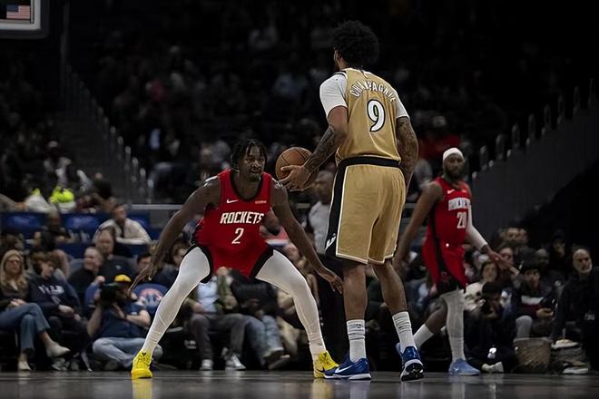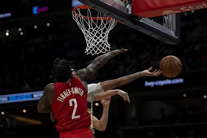 本场比赛中,火箭的替补锋线新援多里安-芬尼-史密斯(Dorian Finney-Smith)的表现其实还是比较一般的。芬尼-史密斯全场出场26分58秒,投篮6中2,三分线外1中1,得到了5分6篮板1助攻1抢断的数据,还有2次犯规,正负值为+1。芬尼-史密斯在本场比赛中的出场时间创造了本赛季的个人新高,然而他在场上的表现却并没有取得任何实质性的提升。芬尼-史密斯的进攻效率依然非常一般,还是很难得到更多的分数,也没有什么其他方面的作用。芬尼-史密斯在防守端确实有着不错的个人防守意识的,但是他在移动速度方面的问题依然非常明显,即使他有着不错的防守经验和防守能力,他也同样没有办法在这方面起到基本的效果。出场时间这么多却只能打出这样的数据,确实是有些惨淡了一些。