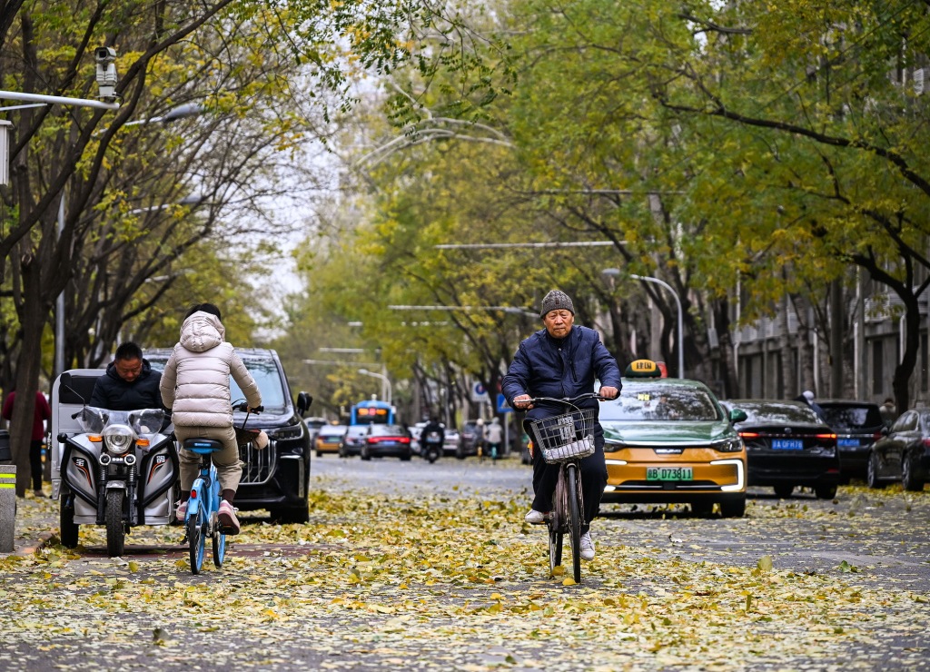11月24日,北京迎来降温寒潮天气,大风吹得满城落叶。