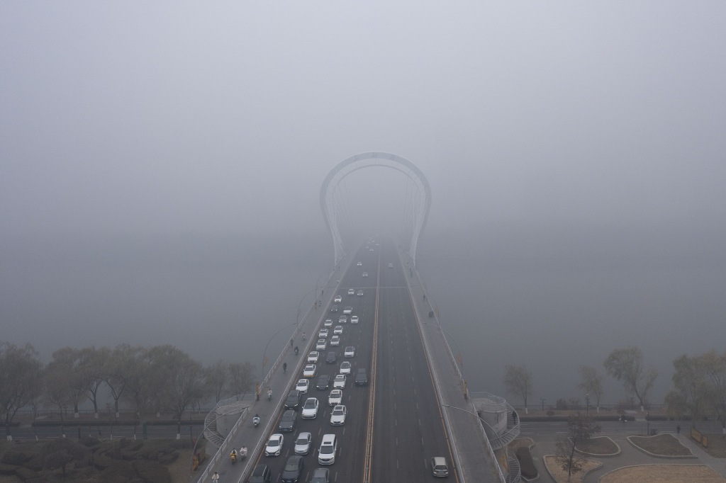 11月24日,辽宁沈阳,沈阳市气象台发布大雾红色预警信号。