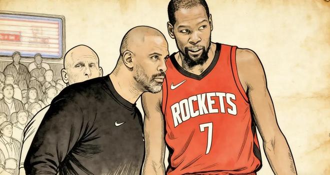 之后火箭换上杜兰特,但对面的布朗教练似乎早有应对,他充分利用杜兰特体力不济的缺点,对他进行包夹、压迫式防守,迫使杜兰特最后一节7投仅2中;而面对高压防守,杜兰特也曾试着将球早早传出去,但要么直接失误,要么队友压根投不进。最后只能眼睁睁看着球队耻辱崩盘,惨遭大逆转。