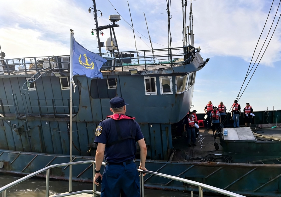 9月19日下午,渔船“翼黄渔xxx”从横沙渔港出发,航经崇明南门水域时突发搁浅险情,船体出现严重右倾,8名船员身陷险境,崇明海事局迅速启动应急救援,最终实现全员平安脱险,以专业“海事速度”筑牢水上生命防线。