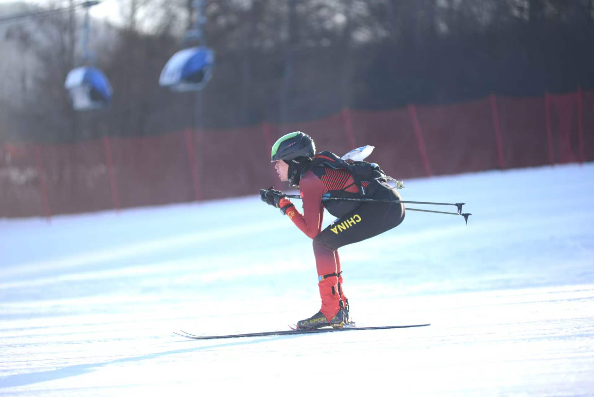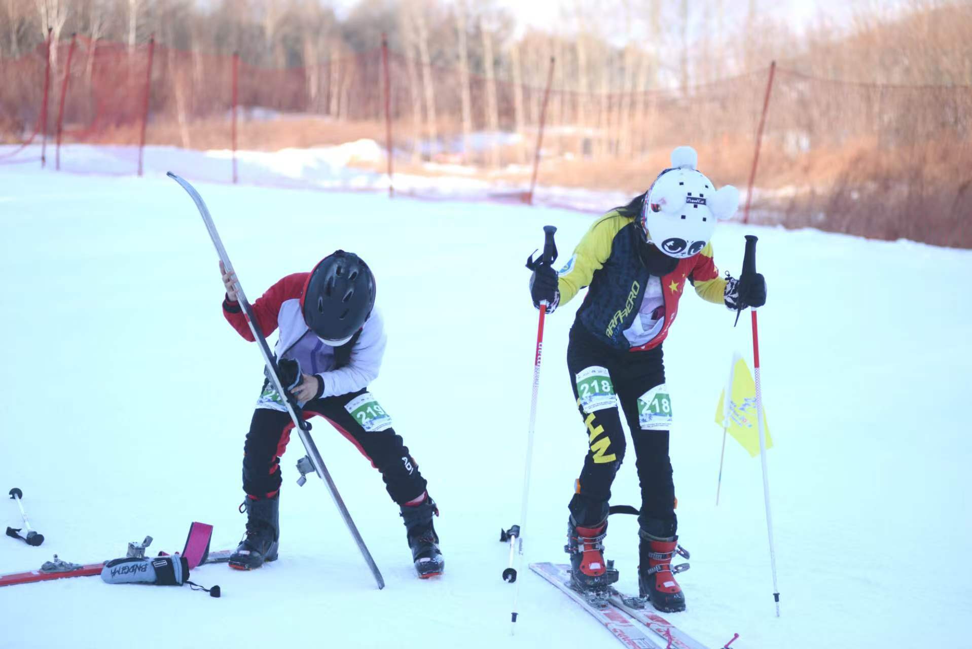2月7日,第二个比赛日,50名队员根据年龄也被分为U10-U13和U14-17两个组别,展开个人越野赛的角逐。个人越野赛赛道全长2.5公里,累计爬升约210米,个人越野赛要求选手们穿着滑雪登山板先完成210米的垂直爬升,然后在山顶更换下滑装备,按照规定路线下滑至换项区,完成两次转换,最后再以最快速度完成下滑至终点。