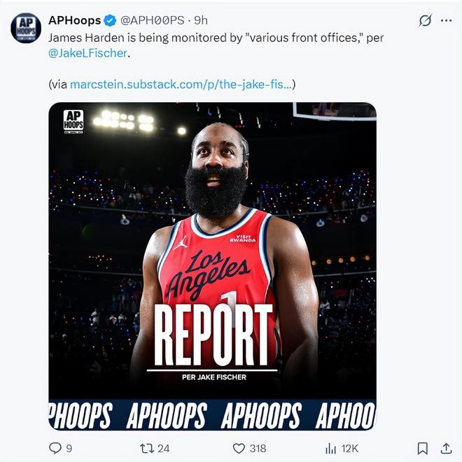 北京时间12月24日,根据《露天看台》记者杰克-费舍尔的报道,多支球队的管理层都在密切关注詹姆斯-哈登的动向。甚至有小道消息称快船已经获得了至少一个首轮签的报价,但目前快船还没有将哈登摆上货架。