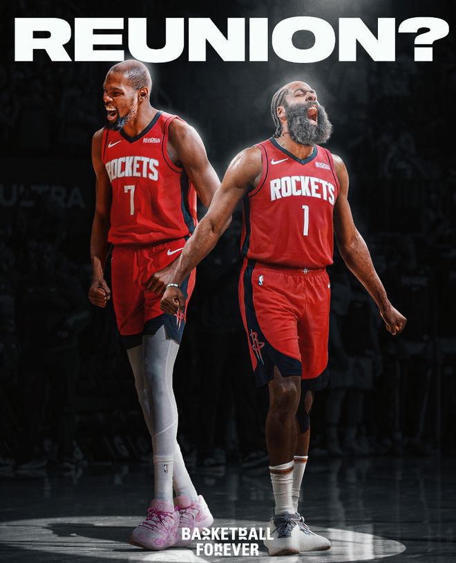 快船队本赛季的表现远低于预期,快船媒体APHoops一直以来都想为36岁的老登完成夙愿拿到一次总冠军,所以在12月19日他就PS哈登+杜兰特身披火箭球衣的图片写道:嗨 休斯顿。