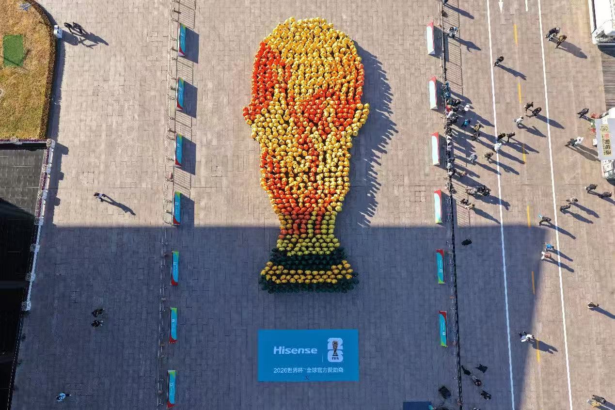 今天上午,象征着世界足球最高荣誉的世界杯冠军奖杯——大力神杯在青岛奥帆中心迎来了首秀,数千名岛城球迷有幸来到现场,与大力神杯近距离接触。而作为这次活动的主办方,2026年美加墨世界杯官方赞助商海信,在现场展出了世界杯定制产品的全套阵容,800多人组成的方阵,挑战最多人组成的大力神杯图形,从而创下吉尼斯世界纪录,更是让本次活动写进了历史。
