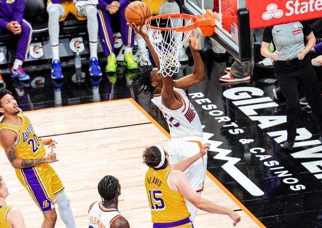 这套阵容是东契奇和斯玛特在湖人的首秀,吸引了外界的高度关注。但湖人新阵容的化学反应尚未成熟,特别是第二阵容的稳定性不足。比赛开局,湖人围绕东契奇展开战术,试图通过他的组织能力和个人进攻撕开太阳防线。东契奇与艾顿的高位挡拆配合频频得手,里夫斯则通过无球跑动和外线投射为球队提供火力支持。湖人在首节一度占据主动,凭借东契奇的串联和艾顿的内线终结,领先优势一度达到10分。