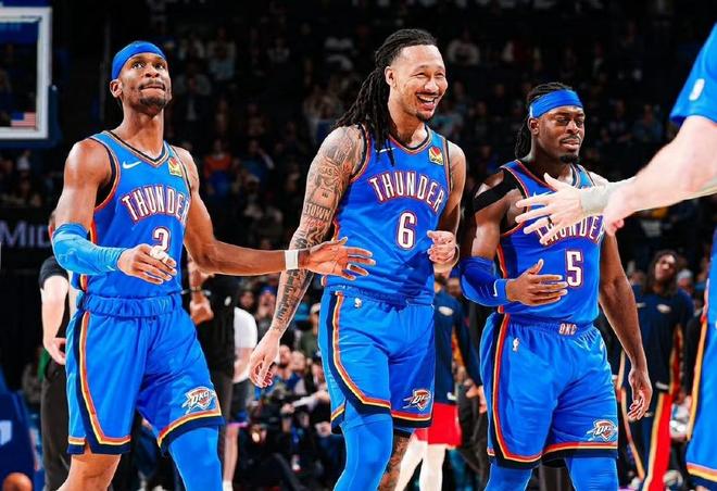 森林狼这边,东尼-爱德华兹26分5篮板5助攻2抢断;杰登-麦克丹尼尔斯21分4篮板4助攻2盖帽;丹特-迪温琴佐11分5篮板5助攻2抢断;朱利叶斯-兰德尔13分5篮板5助攻4抢断;纳兹-里德18分7篮板;鲁迪-戈贝尔14分11篮板。雷霆这边,谢伊-吉尔杰斯-亚历山大30分6篮板8助攻;切特-霍姆格伦15分5篮板3盖帽;以赛亚-哈尔滕施泰因11分5篮板;卡森-华莱13分;阿龙-威金斯10分4篮板5助攻2抢断。