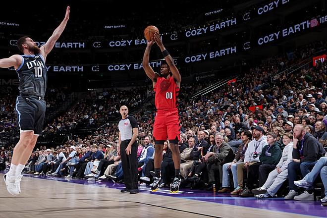 本场比赛中,开拓者的替补后场新星斯科特-亨德森(Scoot Henderson)的表现实在是令人大跌眼镜。亨德森全场出场20分59秒,投篮11中3,三分线外7中3,罚球2中2,得到了11分1篮板3助攻的数据,还有2次犯规,正负值为-30。亨德森在进攻端的效率非常糟糕,他命中了几记外线投篮,但是他在进攻选择方面存在着明显的问题,他也是浪费了不少的机会。亨德森在传球和组织方面的表现也是比较一般的,其实同样是没有发挥出自己的作用的。除此之外,亨德森在防守端的表现也是一塌糊涂的水平,同样表现无法令人感到满意。至少在本场比赛中,亨德森在攻防两端都没有发挥出自己的特点,他在场上时球队的局面一塌糊涂,这也在很大程度上导致了球队的这场惨败。