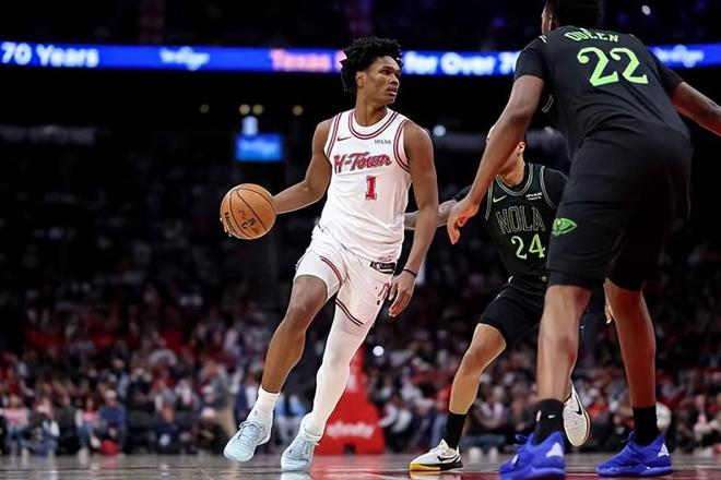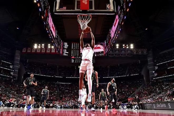 本场比赛中,火箭的先发控卫阿门-汤普森(Amen Thompson)又一次将自己在运动能力方面的特点发挥了出来。阿门全场出场40分05秒,投篮14中10,三分线外1中0,得到了20分8篮板6助攻1抢断1盖帽的数据,还有2次失误,正负值则是达到了全场最高的+21。阿门在进攻端还是展现出了相当不错的突破能力和终结能力,也是得到了不少的分数,他在运动能力方面的优势又一次得到了充分地体现。阿门在防守端的表现也是值得肯定的,他也是能够在防守端起到作用的,而且他也在一定程度上在传球和组织方面发挥出了一些才能。总体来看,阿门在本场比赛中算是在攻防两端都发挥出了很高的水准,算得上是打爆了鹈鹕了,他也是为球队能够取得这样一场胜利的关键因素。