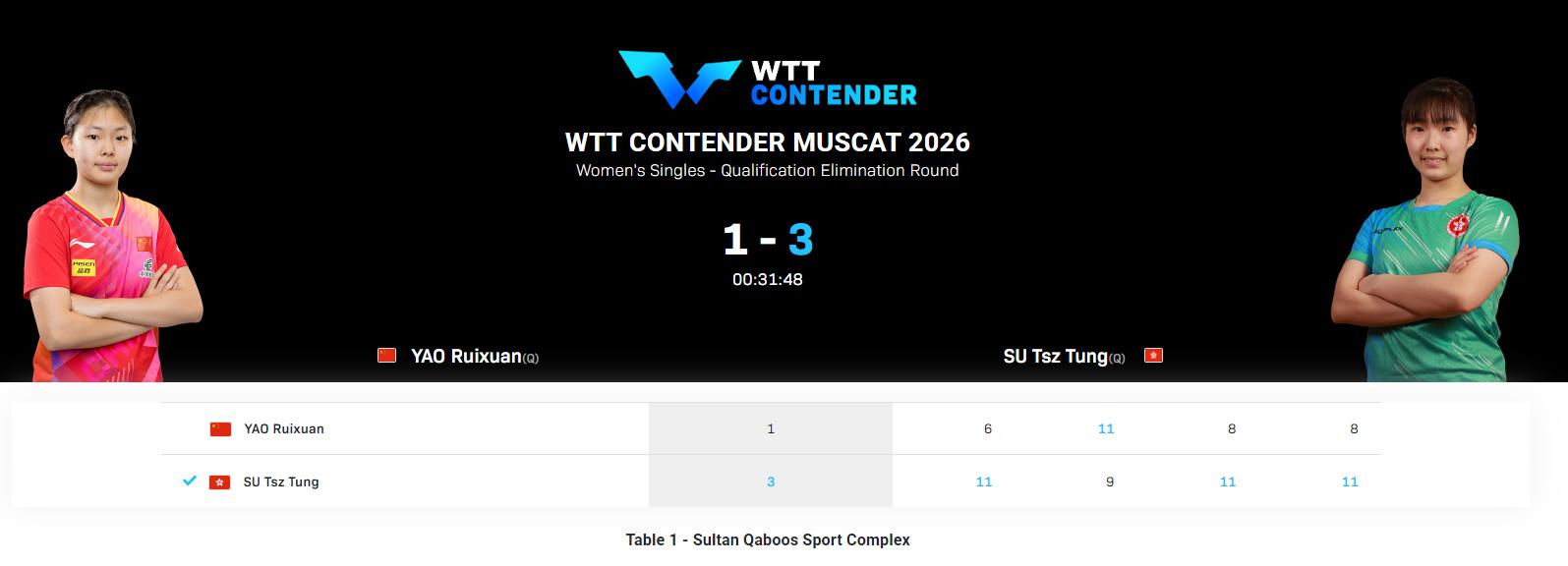 本次比赛是2026年1月西亚三站赛事中的最后一站,在已经结束的两站赛事中(WTT多哈冠军赛;WTT多哈球星挑战赛),国乒单打成绩并不理想。