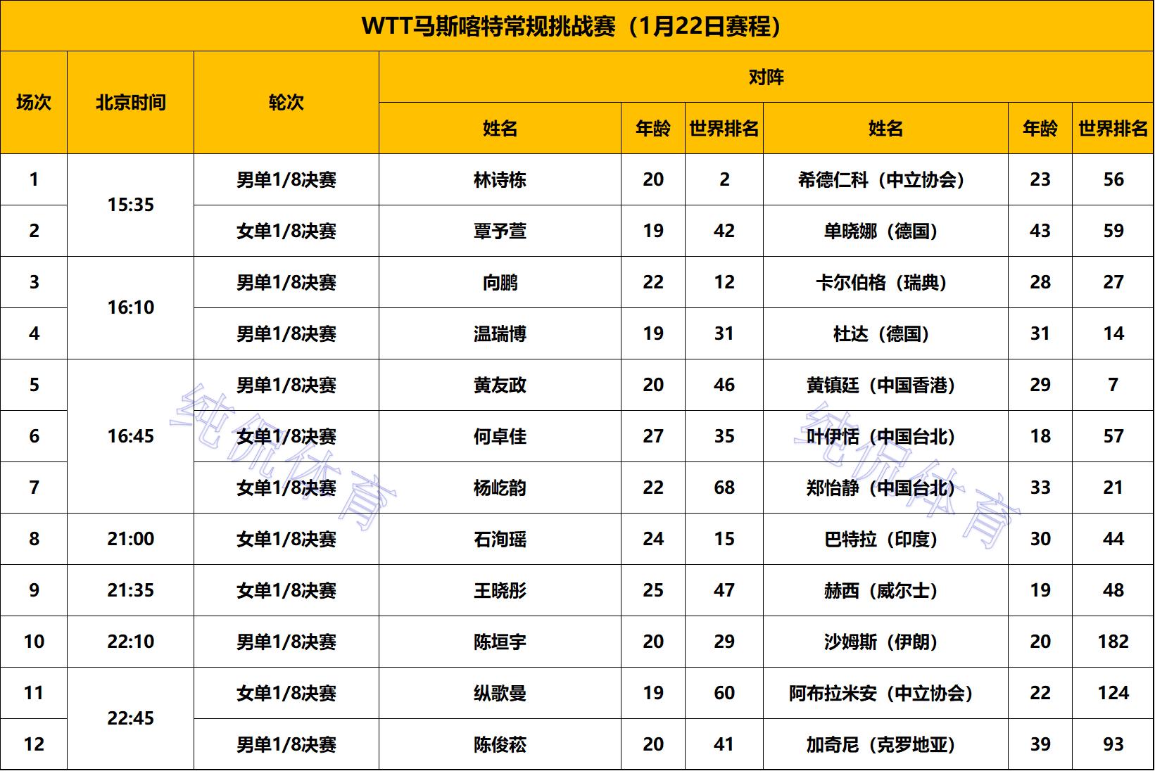 根据赛程安排,北京时间1月22日至23日凌晨进行的第4个比赛日,将进行单打1/8决赛,诞生男、女单八强名额!国乒单打余下12人全力冲击单打八强。