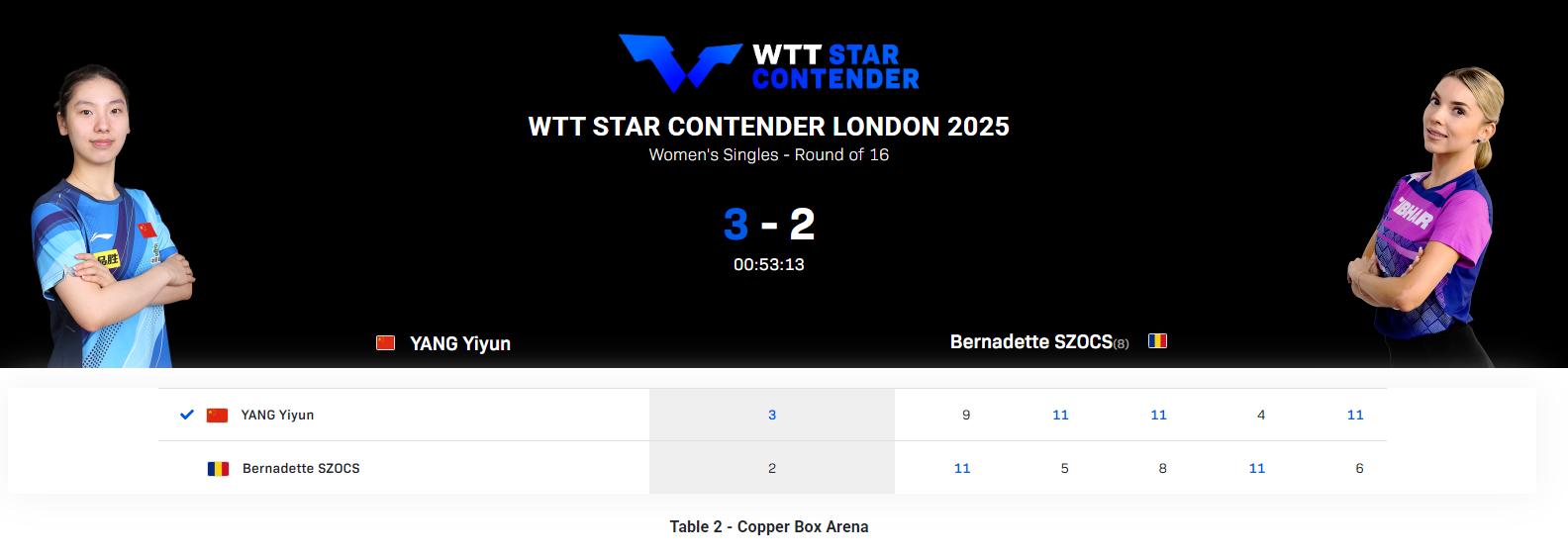 至此国乒女单参赛6人仅剩杨屹韵独苗了,杨屹韵从女单正赛首轮(1/32决赛)打起,目前已经连胜3场!女单1/32决赛3-2战胜克罗地亚选手拉科瓦奇;女单1/16决赛3-1战胜法国21岁新星帕瓦德;